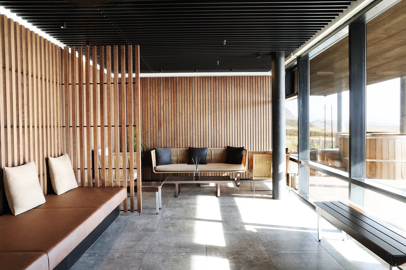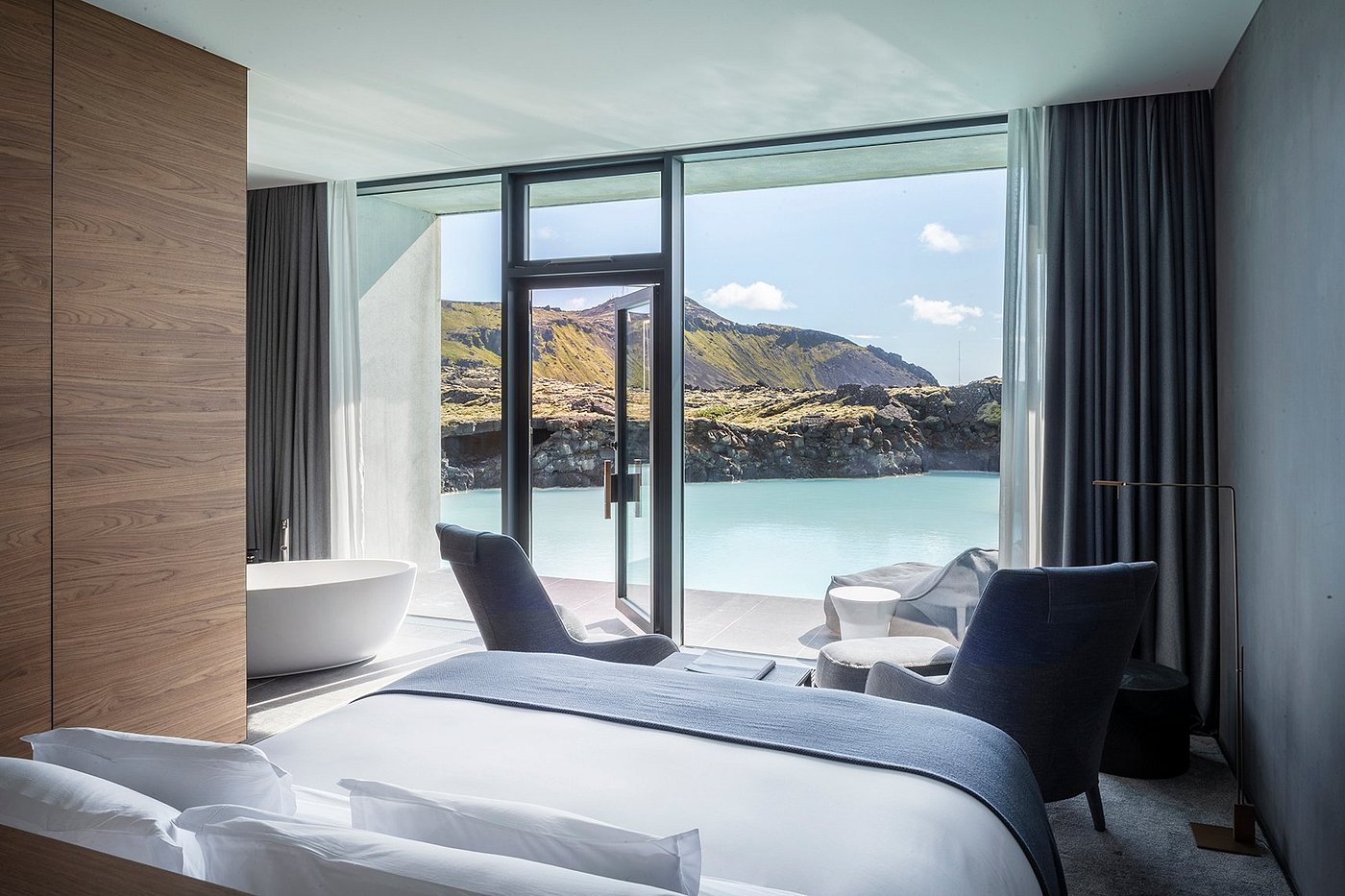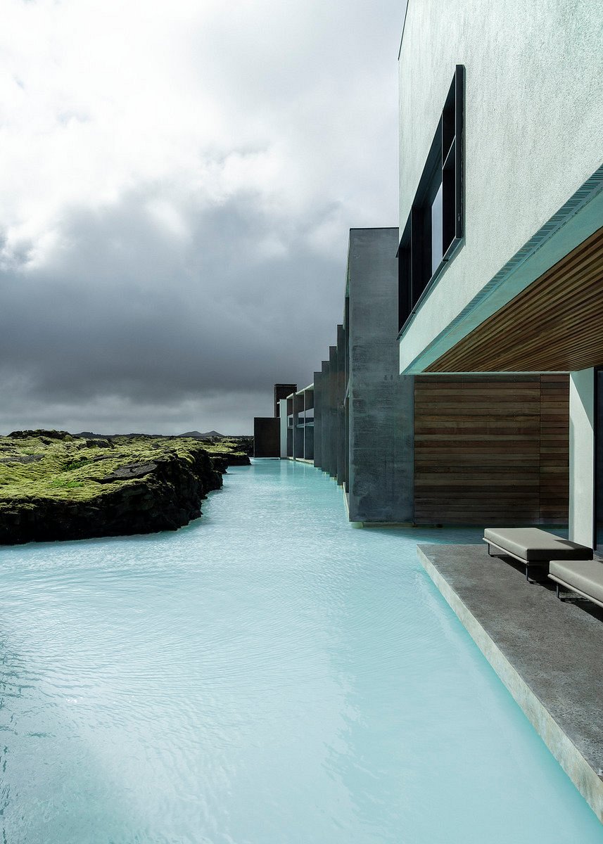 Este unul dintre cele mai spectaculoase hoteluri din Islanda, construit direct într-un câmp de lavă vechi de 800 de ani. Suitele au acces către lagunele geotermale, unele chiar private, iar spa-ul subteran transformă experiența într-un ritual complet.