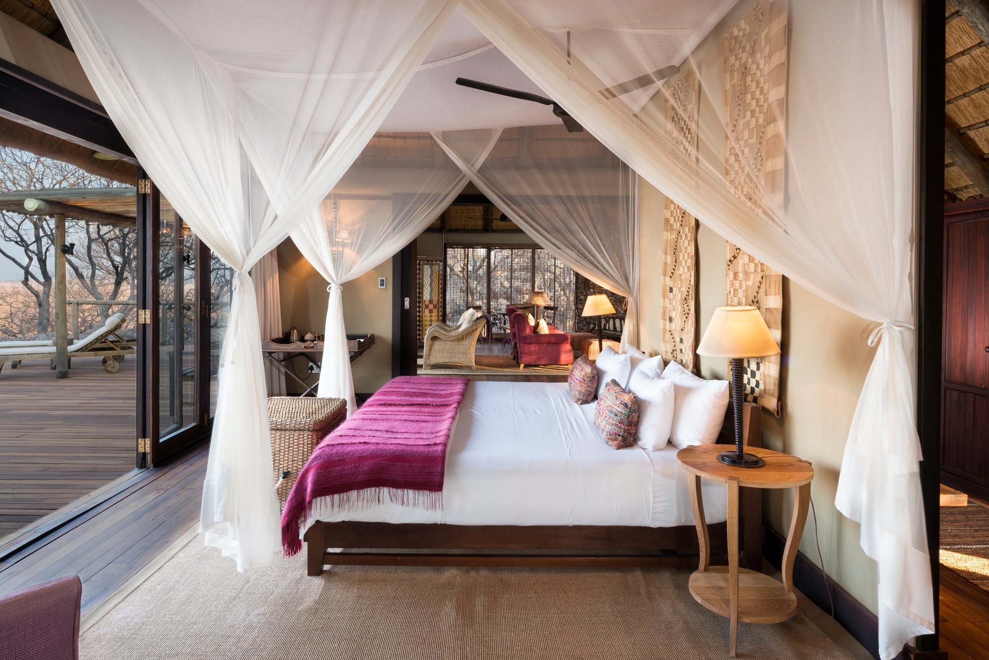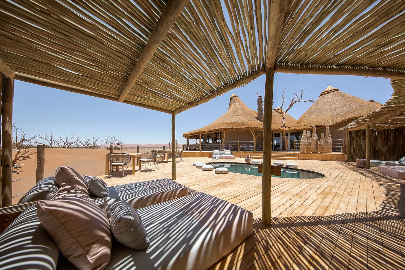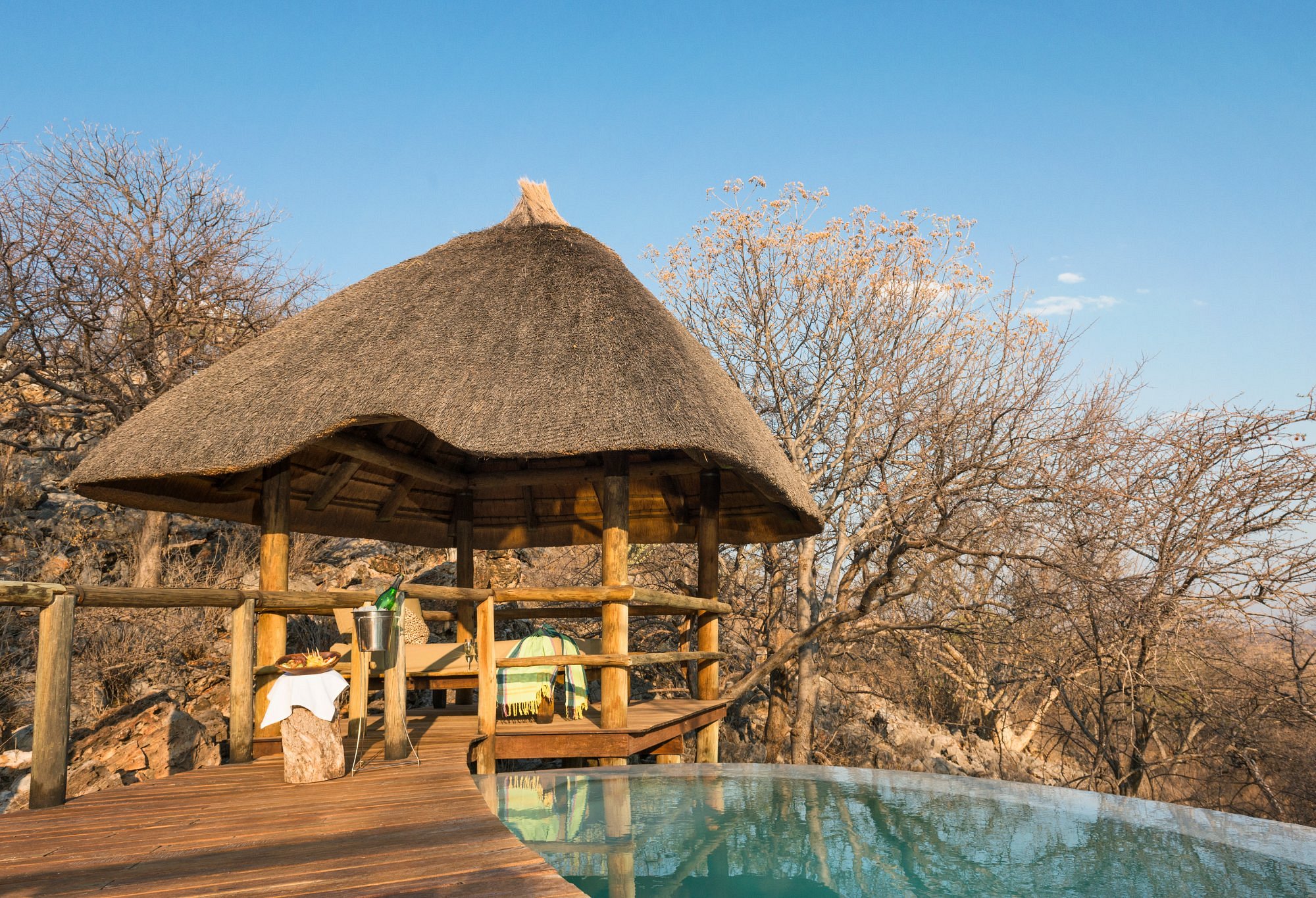 În Etosha National Park, safariul funcționează diferit de alte zone din Africa. Vegetația este rară, iar elefanții, girafele, zebrele și rinocerii vin singuri în zonele cu apă, ceea ce îți oferă mai mult timp de observare. În rezervațiile private de la marginea parcului, experiența devine mai intimă, cu mai puține mașini, apusuri liniștite și seri petrecute lângă „waterhole”, unde nu trebuie să pleci nicăieri pentru că viața sălbatică se desfășoară în fața ochilor tăi.